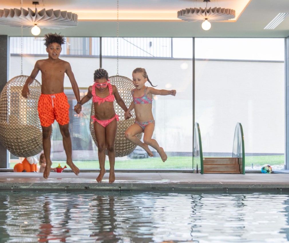 Genießt gemeinsam erfrischende Momente im Indoor Family Pool und lasst euch, wenn ihr wollt, anschließend von der wohltuenden Wärme und Ruhe der finnischen Sauna umhüllen – der perfekte Ort, um Körper und Geist zu regenerieren. Entspannt im Zirbenruheraum oder auf der getrennten, sichtgeschützten Liegewiese im Freien. Währenddessen dürfen eure Kinder in unserer liebevollen Betreuung spielen, neue Freunde finden und ihre eigenen Abenteuer erleben – dienstags bis freitags, von 9 bis 17 Uhr.