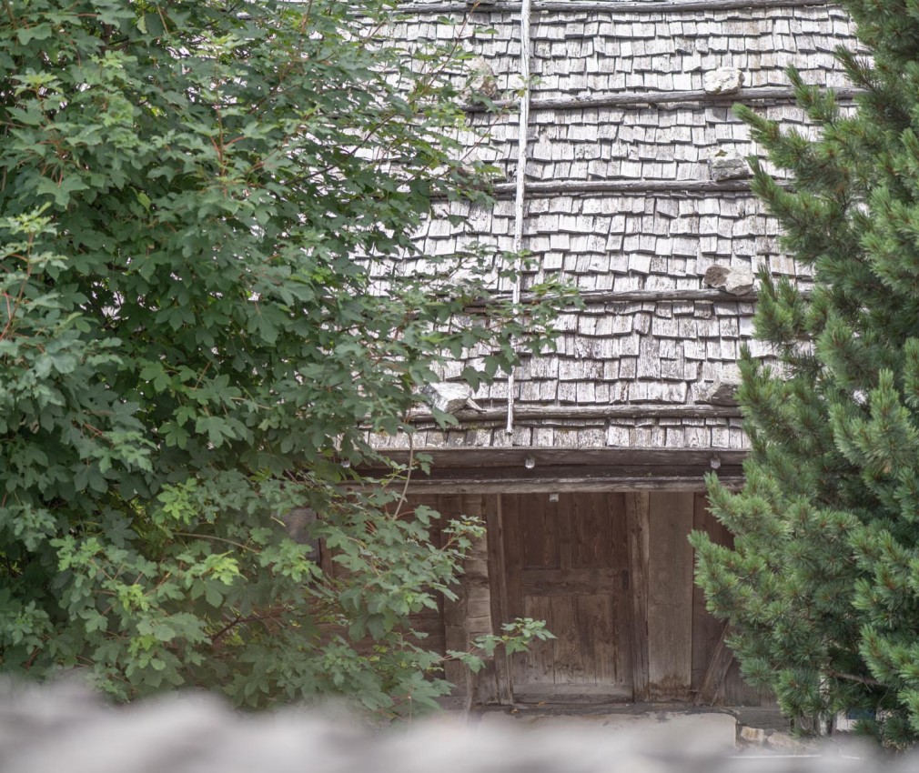 Bei Umbauten verwenden wir natürliche Materialien: Schafwollteppiche in den Gängen und Holz aus unserem eigenen Wald für Fassade, Terrassen und viele Möbel.