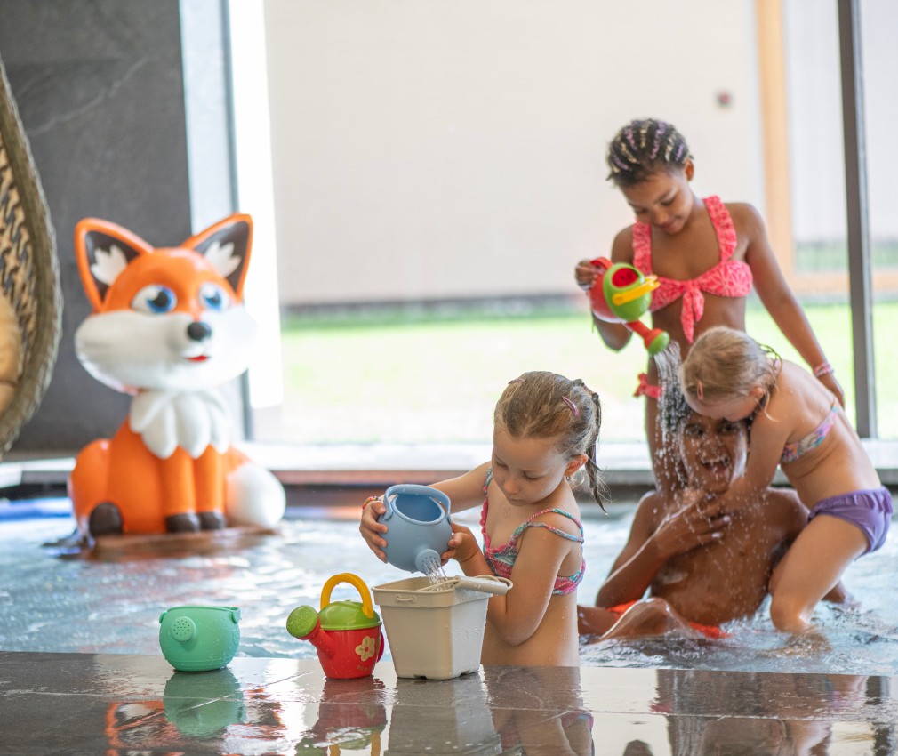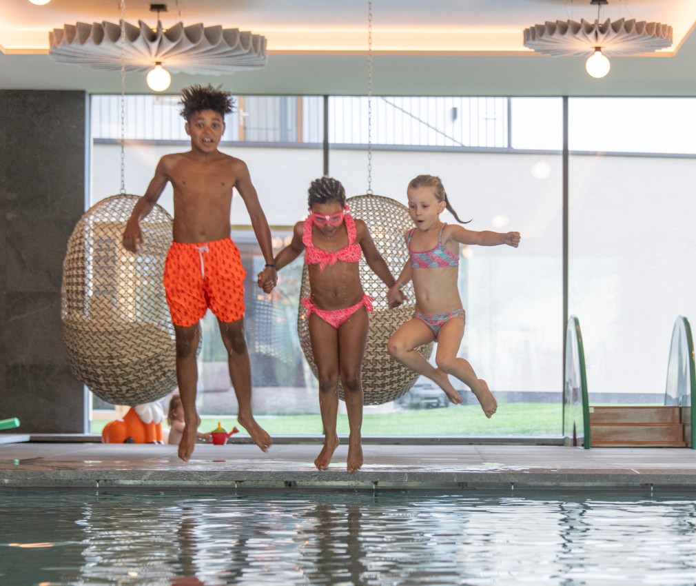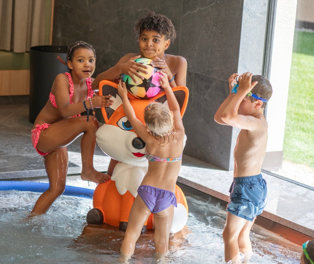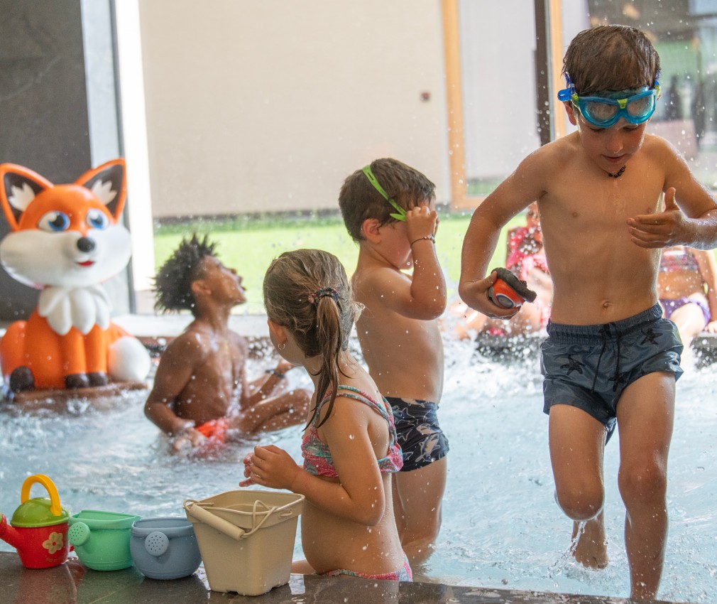 Dear future Linara holidaymakers: you can look forward to a large playground in the water! We wouldn't be a family hotel if children couldn't jump in here and let off steam in the water. We have pool noodles, water buckets and watering cans to hire. These toys stimulate the imagination and often provide hours of fun – just like playing water polo or doing underwater rolls!