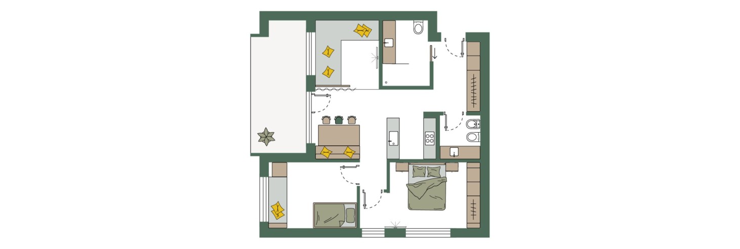 Ti preghiamo di notare che l’effettiva disposizione dell’appartamento potrebbe differire leggermente dalla piantina.