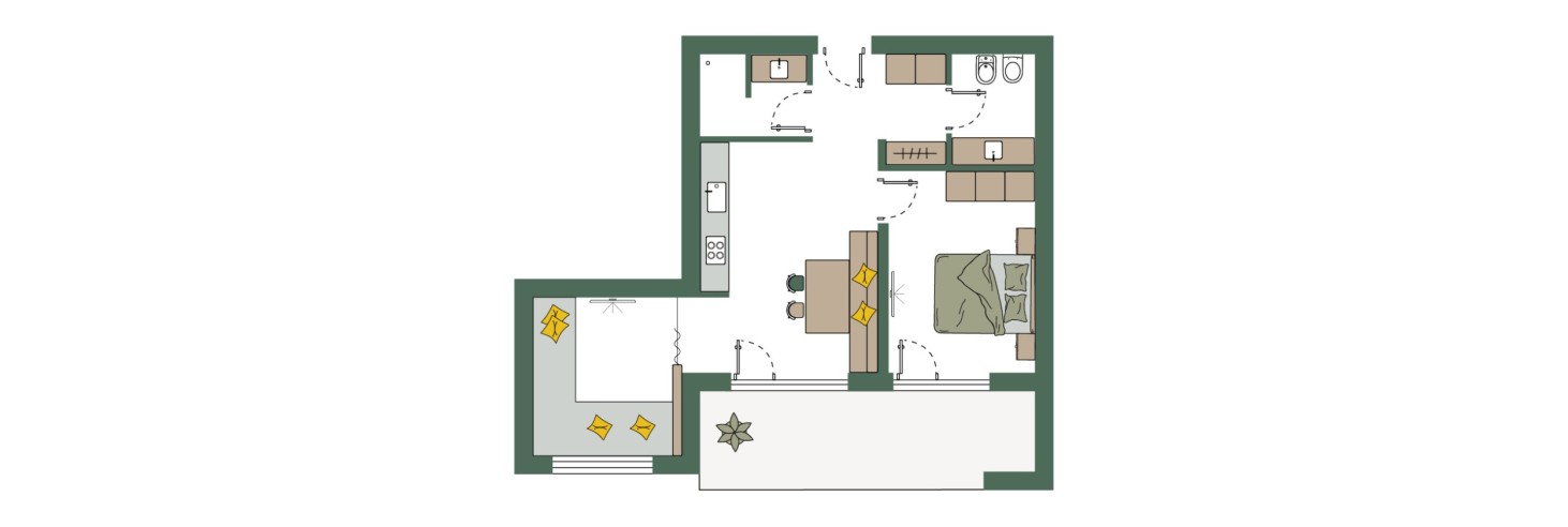 Ti preghiamo di notare che l’effettiva disposizione dell’appartamento potrebbe differire leggermente dalla piantina.