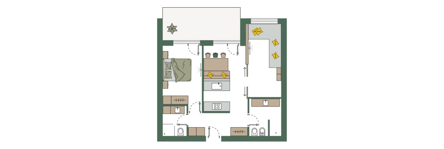 Ti preghiamo di notare che l’effettiva disposizione dell’appartamento potrebbe differire leggermente dalla piantina.