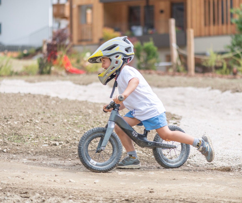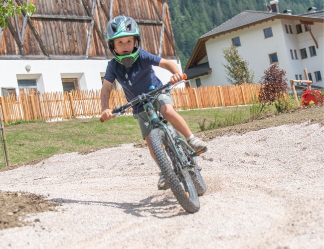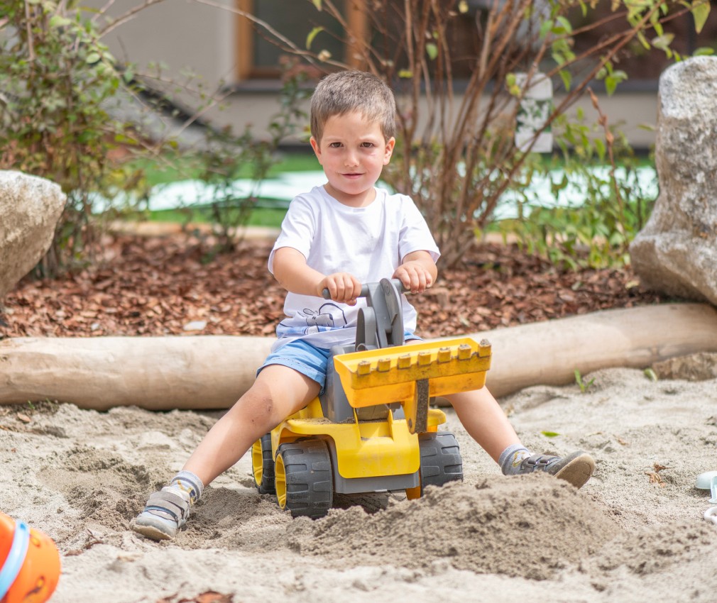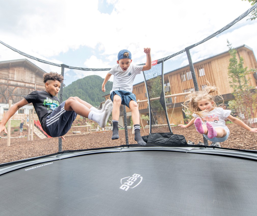 Natura e avventura attendono i bambini nel nostro parco giochi all’aperto, proprio alle spalle della struttura, lontano dal traffico e in mezzo al verde: qui, oltre a un’altalena nido, a uno scivolo, a un piccolo percorso di abilità e a una sabbiera, ci sono anche un trampolino e un pump track, ma anche tronchi d’albero e pietre per allenare equilibrio e arrampicarsi. Per i futuri piloti che vogliono fare pratica, il nostro parco di mini veicoli comprende un trattore a pedali, go-karts o una bicicletta senza pedali a noleggio. In inverno, i mezzi vengono rimpiazzati da bob e slitte, perfetti per scivolare a tutta velocità sul manto nevoso del prato accanto all’hotel. Genitori e nonni possono accomodarsi sulle comode panchine e portare con sé le bevande ordinate al bar.