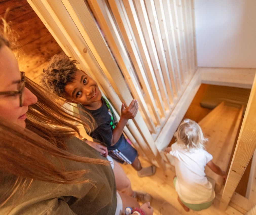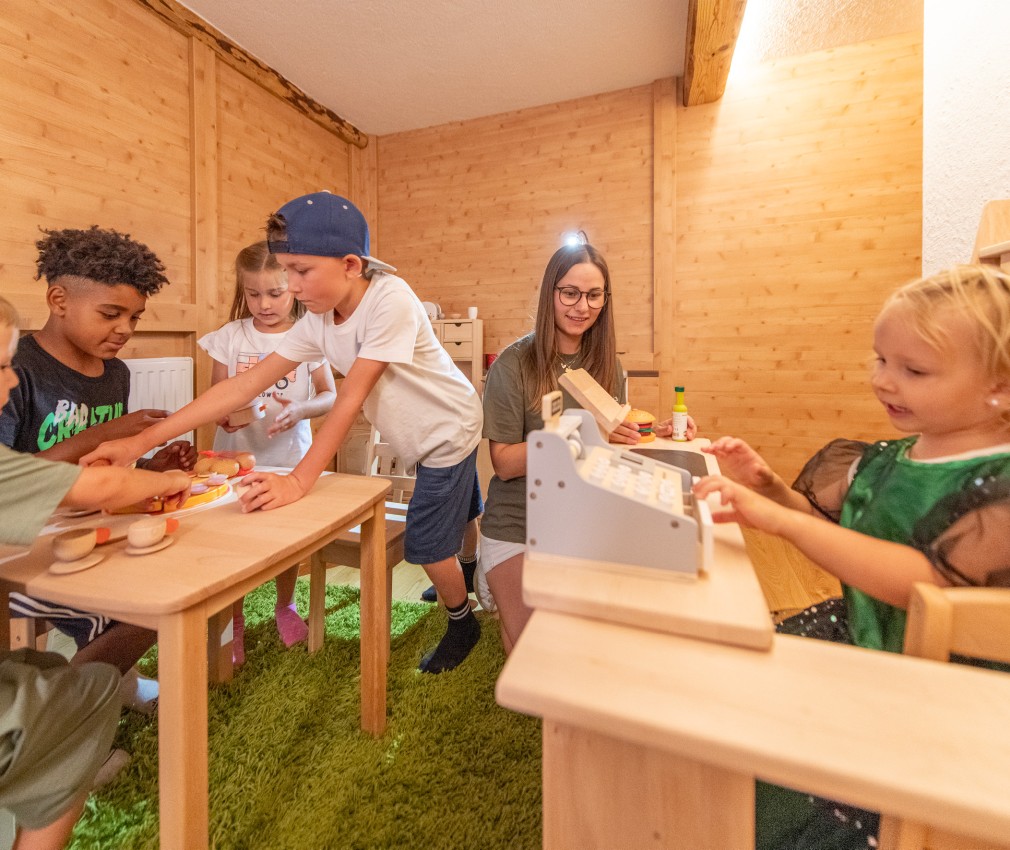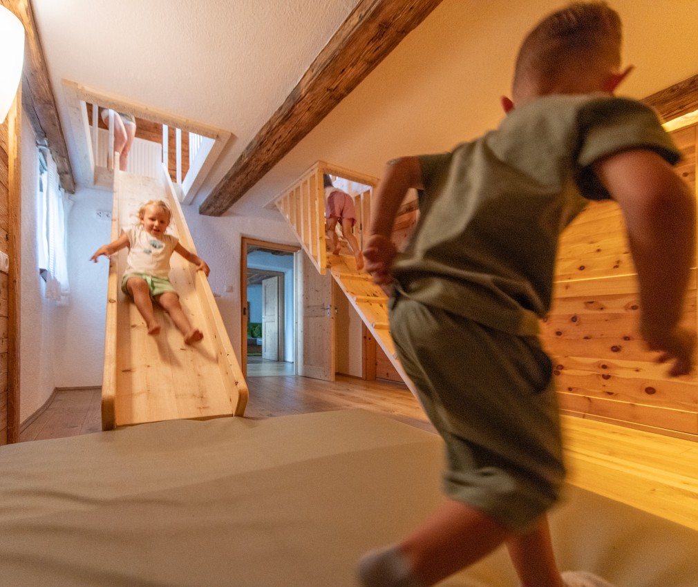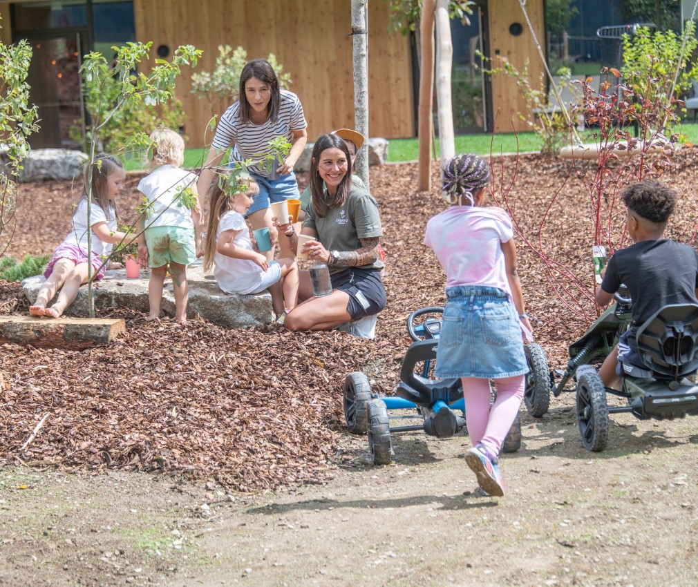 Natura e avventura attendono i bambini nel nostro parco giochi all’aperto, proprio alle spalle della struttura, lontano dal traffico e in mezzo al verde: qui, oltre a un’altalena nido, a uno scivolo, a un piccolo percorso di abilità e a una sabbiera, ci sono anche un trampolino e un pump track, ma anche tronchi d’albero e pietre per allenare equilibrio e arrampicarsi. Per i futuri piloti che vogliono fare pratica, il nostro parco di mini veicoli comprende un trattore a pedali, go-karts o una bicicletta senza pedali a noleggio. In inverno, i mezzi vengono rimpiazzati da bob e slitte, perfetti per scivolare a tutta velocità sul manto nevoso del prato accanto all’hotel. Genitori e nonni possono accomodarsi sulle comode panchine e portare con sé le bevande ordinate al bar.